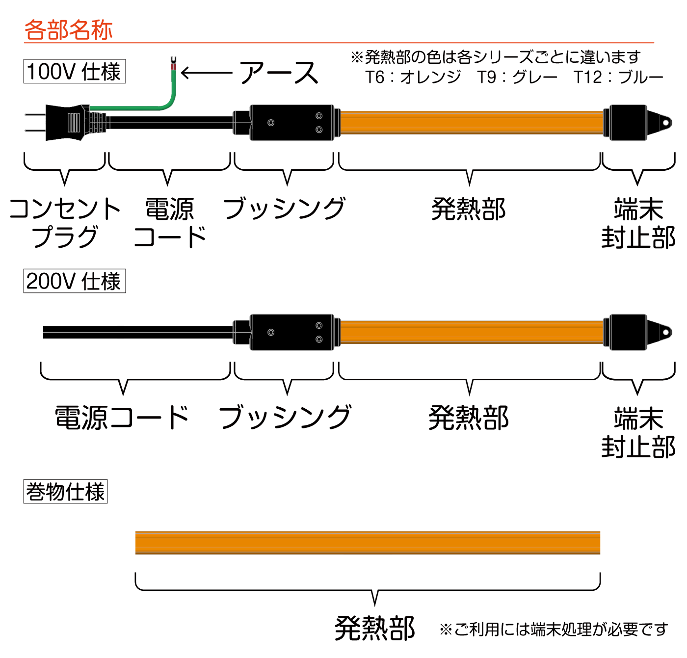 - 巻物(100V・200V兼用、電源コード、プラグなし)