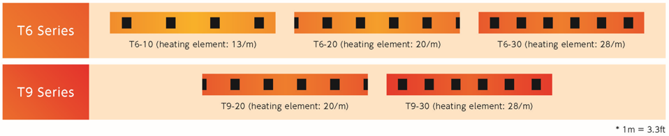 | Article No. | Length (m) | Power(W)※ | Element pitch (mm) |